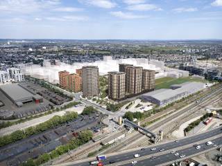 Dagenham Green has consent for over 3,500 new homes along with over 44,000 sq m of new commercial space and a new secondary school. Phase 1 sits in the south west corner of the site and will provide around 935 new homes alongside the commercial.